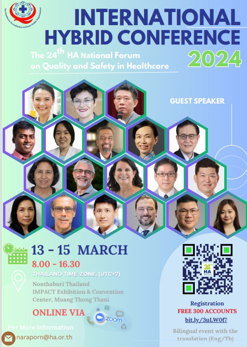 The 24th HA National Conference on Quality and Safety in Healthcare, organized by the Healthcare Accreditation Institute (HA) of Thailand, will be held hybrid on 13-15 March 2024. At the conference, where 19 international speakers will present their perspectives on Quality and Safety in Health Services, Associate Professor İbrahim Halil KAYRAL will give a speech titled "Elevating Healthcare Quality: Lessons from Turkey's Accreditation Journey" on 14.03.2024 (09:00 EST). Registration for the conference is free, to register: