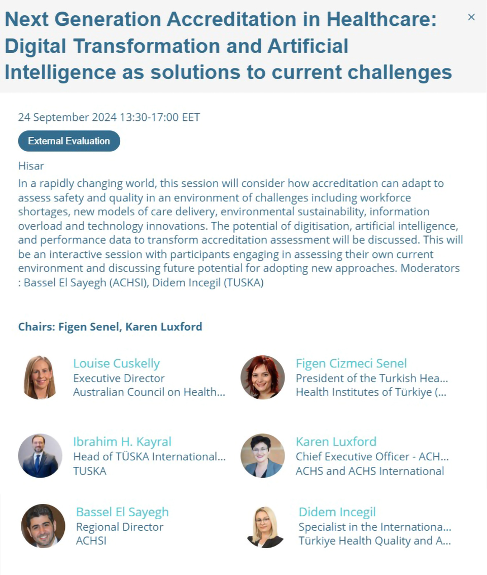 40th ISQua International Istanbul Conference: Next Generation Accreditation in Healthcare Session Organized in Collaboration with TÜSKA and ACHS International
