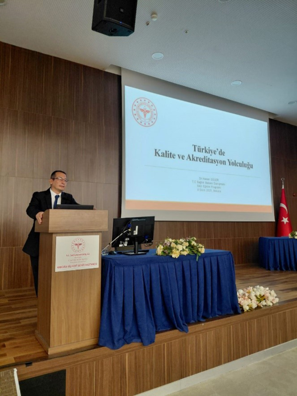Following the opening speech, Dr. Hasan Güler, Consultant to the Minister of Health, delivered a presentation titled “Quality and Accreditation Journey in Türkiye”, highlighting that accreditation has become a significant tool under the new policies of the Ministry and that quality and accreditation efforts have evolved from their inception to the present day.