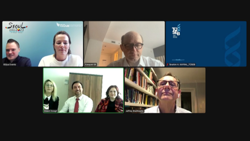 As Türkiye Health Care Quality and Accreditation Institute (TÜSKA), we have been the corporate member of ISQua since 2015. We are representing Türkiye at ISQua Conferences every year so as to closely follow quality and accreditation studies in international arena, to increase our international recognition in this field, and to establish international collaborations. ISQua 2024 Conference will be held in İstanbul on 15-18 September 2024. Within the scope of the preparations for ISQua 2024 İstanbul Conference, the first meeting was held on 7 March 2023 with the participation of ISQua Chairman of the Board Jeffrey BRAITHWAITE, Director of TÜSKA Prof. Figen ÇIZMECI ŞENEL, and the officials from ISQua and TÜSKA.