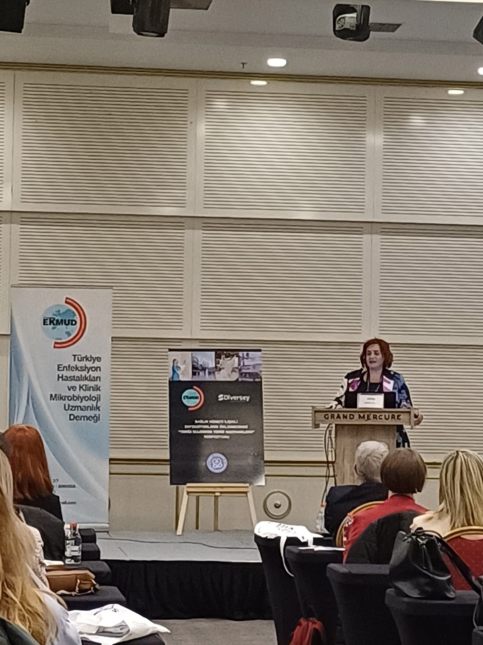 At the Symposium “From Clean Hands to Clean Hospitals” in the Prevention of Healthcare Associated Infections held by the Infectious Diseases and Clinical Microbiology Specialty Society of Turkey (EKMUD) on October 31, 2024, our Institute President Prof. Dr. Figen ÇİZMECİ ŞENEL made a presentation on “What are Accreditation Cleaning Standards in Health?”.
