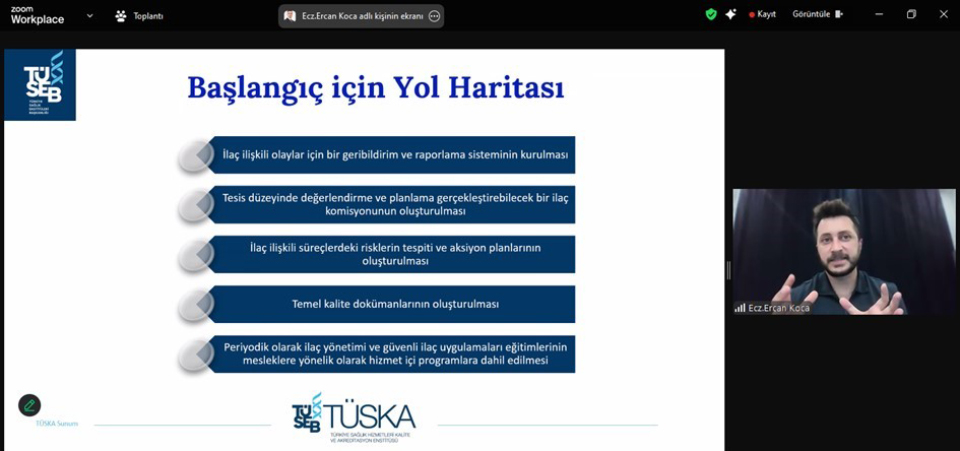 Subsequently, a session on “Waste Management” in healthcare facilities was conducted by Hasan EVİRGEN. In the final part of the training, Pharmacist Ercan KOCA addressed the topic of “Medication Management and Safety,” followed by a presentation by Dr. Levent SONĞUR on “Material and Equipment Management.”