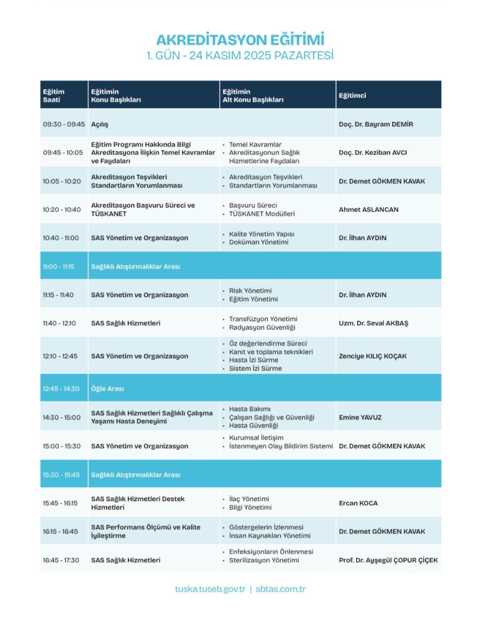 The training aims to share up-to-date practices on quality management in healthcare facilities and TÜSKA accreditation processes, to raise awareness among participants, and to strengthen national accreditation capacity.