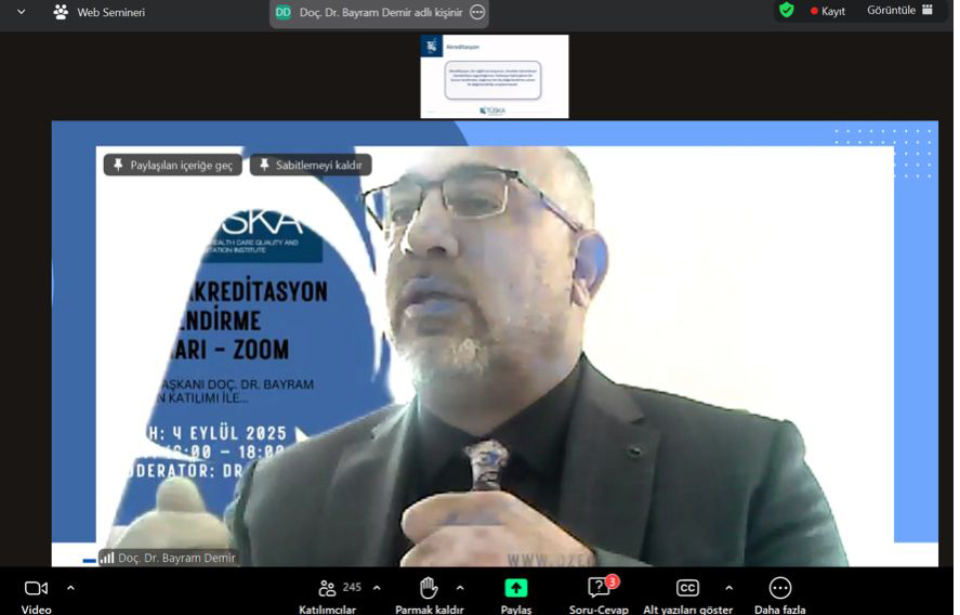The webinar was moderated by Specialist Dr. Ayhan KALYONCU. During the webinar, TÜSKA Accreditation Programs, application requirements, relevant regulations, and TÜSKA training activities were addressed. Participants were informed about TÜSKA accreditation in private health facilities. The webinar concluded with the answers to numerous questions from the participants.