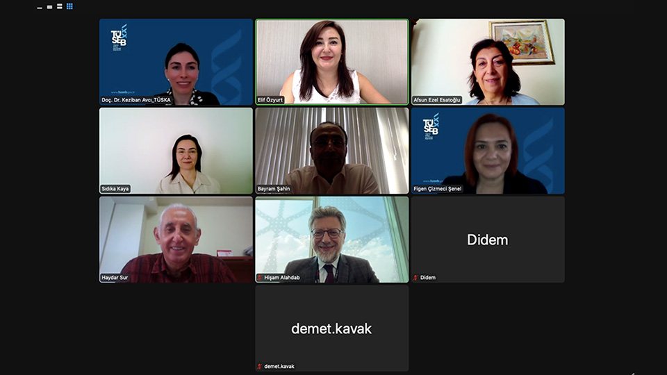 TÜSKA Quality Science Board, our Institute President Our board members, under the chairmanship of Prof.Dr. Figen ÇİZMECİ ŞENEL, on 09 November 2023; Prof. Dr. Afsun Ezel ESATOĞLU, Prof. Dr. Sıdıka KAYA, Prof. Dr. Bayram ŞAHİN, Prof. Dr. Haydar SUR, Expert. Dr. Hisam ALAHDAB and our Quality Science Board representatives; Assoc. Dr. Keziban AVCI and Expert. It was held via video conference with the participation of Elif ÖZYURT.