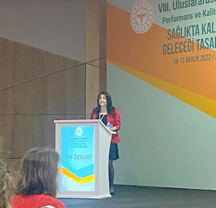 14-17 Aralık 2022 tarihleri arasında Antalya’da gerçekleştirilen 8.Uluslararası Sağlıkta Performans ve Kalite Kongresinde Enstitü Başkanımız Prof. Dr. Figen ÇİZMECİ ŞENEL ’in başkanlığında gerçekleştirilen “Yeni Dünya ve Sağlıkta Akreditasyonun Geleceği” oturumunda ISQua yönetim kurulu üyesi Bruno LUCET tarafından ISQua Standartlarının Sağlık Hizmetlerine Katkısı”, ISQua Uluslararası Programlar Başkanı ve yönetim kurulu üyesi Salma JAOUNI tarafından “Akreditasyonun Geleceğine Global Bakış”, TUSEB Genel Sekreter V. Doc. Dr. İbrahim Kayral tarafından Dijital Cağda Akreditasyonun Geleceği: TÜSKA Politika ve Uygulamaları” ve Dr. Demet Kavak tarafından “Türkiye’nin Mükemmeliyet Merkezlerine Doğru” başlıklı sunumlar yapıldı. Ayrıca TÜSKA Kalite Yönetimi ve İyileştirme Birimi uzmanı Elif Özyurt “Pandeminin Kahramanları Sağlık Profesyonelleri: Türk Sağlık Sektöründeki Hastanelerin Çalışan Güvenliği Açısından Değerlendirmesi” adlı sözlü sunumu gerçekleştirdi.