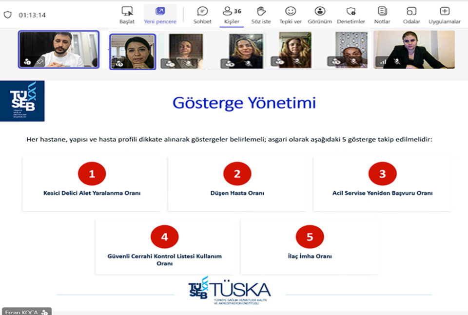 Farklı sağlık kuruluşlarından toplam 39 katılımcının yer aldığı etkinlikte, standartlara dayalı uygulamaların sağlık tesislerinde sistematik biçimde hayata geçirilmesinin; sağlık hizmetlerinde kalite düzeyinin yükseltilmesine, uygulamaların geliştirilmesine ve sürdürülebilir bir kalite kültürünün yerleşmesine önemli katkı sağlayacağı vurgulandı.