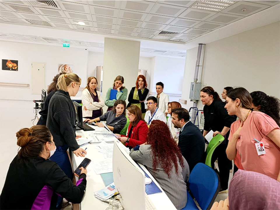 Eğitim sürecinde, hastanenin işleyişi akreditasyon standartları çerçevesinde kapsamlı şekilde ele alınarak katılımcılara yol gösterici bilgiler sunuldu. İnteraktif şekilde yürütülen eğitim sürecinde, akreditasyon standartlarına uyum düzeyi; hasta ve sistem izi sürme yöntemleri kullanılarak uygulamalı olarak ele alındı.