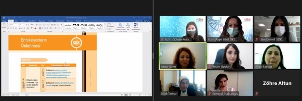 TÜSKA Başkanı Prof. Dr. Figen ÇİZMECİ ŞENEL ile Sağlıkta Kalite, Akreditasyon ve Çalışan Hakları Daire Başkanı Uzm. Dr. Dilek TARHAN’ ın başkanlık ettiği çalıştaya, Enstitümüz Akreditasyon Standartları ile ilgili daire Sağlıkta Kalite Standartları Geliştirme Birim çalışanları, alan uzmanları ve standartları uygulayan kurum temsilcileri katılım sağlamıştır.