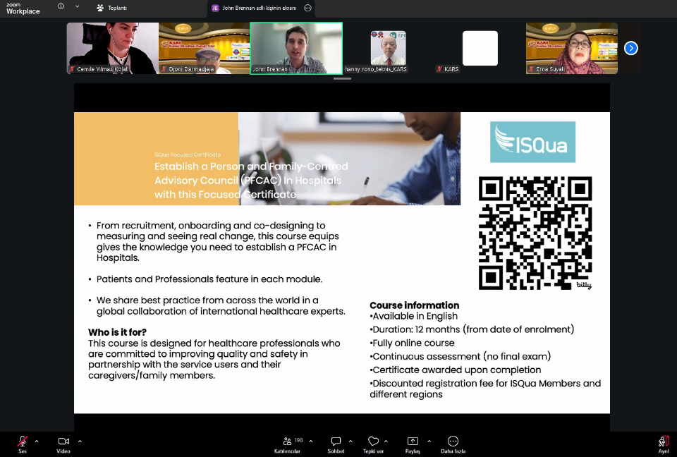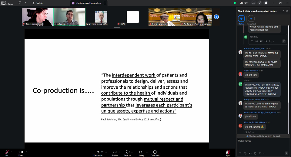 KARS (Endonezya Hastane Akreditasyon Komisyonu), Patient-Centered Care Institute (PCCI) ve Asian Society for Quality in Health Care (ASQua) iş birliğinde düzenlenen “7th International Patient-Centered Care Institute (PCCI) Webinarı”, uluslararası katılımla çevrim içi olarak gerçekleştirildi.