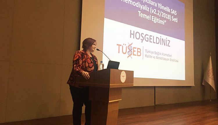 SAS Hemodiyaliz Seti (v2.2/2018)’nin uygulayıcılar tarafından tam ve doğru olarak anlaşılması ve standart uygulama süreçlerinin etkinliğinin artırılmasına yönelik olarak kurumlara rehberlik sağlamak amacı ile geçekleştirilen eğitim programı; Sağlık Hizmetleri Genel Müdürlüğü Sağlıkta Kalite, Akreditasyon ve Çalışan Hakları Daire Başkanı Uzm. Dr. Dilek TARHAN ve Sayın ŞENEL’ in açılış konuşmalarıyla başlamıştır. Doç. Dr. Umut BEYLİK’ in “TÜSKA Faaliyetleri Hakkında Bilgilendirmesini” içeren konuşmasının ardından “Dünya'da ve Türkiye'de Sağlıkta Akreditasyon’ un gelişim süreci” Dr. Öğr. Üyesi İbrahim Halil KAYRAL ve Sağlıkta Kalite Kültürü’ ne Yaklaşım Dr. Öğr. Üyesi Keziban AVCI tarafından katılımcılara aktarılmıştır. “SAS Hemodiyaliz Seti ve Standartların Uygulanması” na yönelik sunumunda Sayın Uzm. Demet GÖKMEN KAVAK Hemodiyaliz setinin yapısı, kapsamı, boyut ve bölümlerine ilişkin bilgileri uygulayıcılarla paylaşılmış olup eğitim programı Sayın Uzm. Canan CENGİZ’ in “TÜSKA Hemodiyaliz Seti Akreditasyon Programı, Öz Değerlendirme Süreci ve TÜSKAnet” sunumu ile sonlanmıştır.