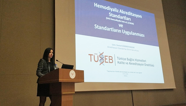 Enstitümüz ve Ankara İl Sağlık Müdürlüğü işbirliği ile 03 Mart 2020 tarihinde, Sağlık Bakanlığı Toplantı salonunda “Uygulayıcılara Yönelik Sağlıkta Akreditasyon Standartları (SAS) Hemodiyaliz Seti (v2.2/2018) Temel Eğitim Bilgilendirme Toplantısı” Enstitü Başkanımız Sayın Prof. Dr. Figen ÇİZMECİ ŞENEL’ in başkanlığında gerçekleştirilmiştir.